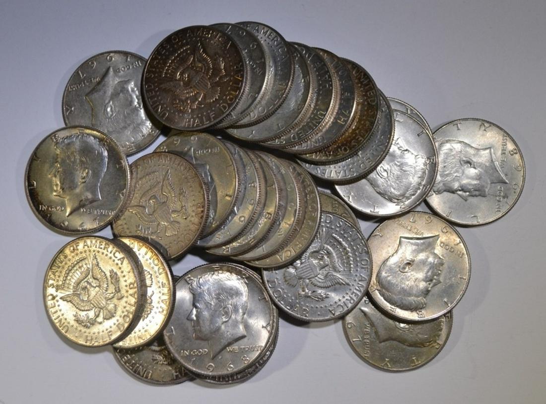Sold1967-69 Kennedy Half Dollars - 40% Silver (180)1967 - 1969 Kennedy half dollars - all 40% silver (180 coins) as follows: 1968 coins (100); 1969 coins (50), and 1967 coins (30).See Sold Price