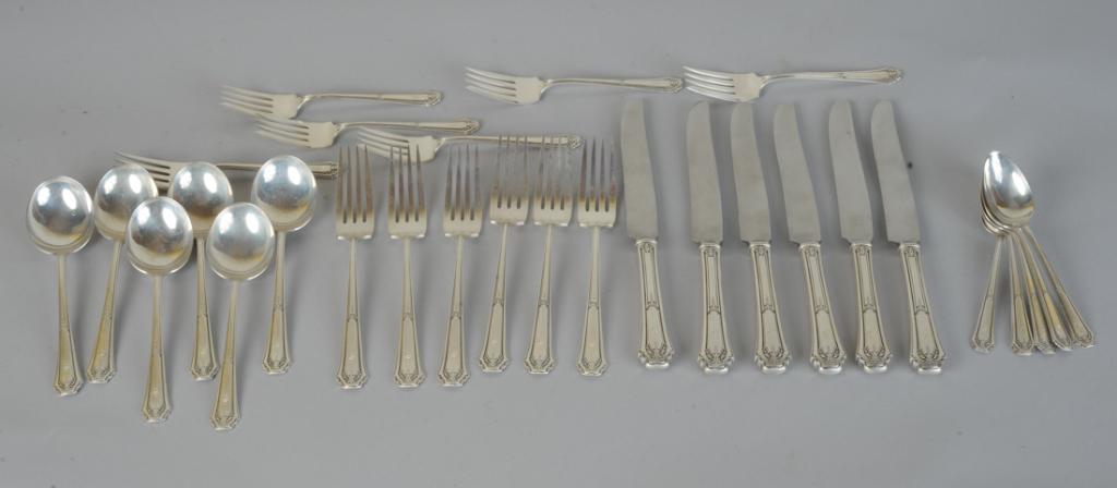Lot of Silver Flatware.Mar 10, 202613PC LOT OF STERLING SILVER FLATWARE, 17 T.O.W.6 days Left12PC LOT OF STERLING HANDLE FLATWARE, 6 T.O.W.6 days LeftTOWLE "OLD LACE" STERLING SILVER FLATWARE, LOT OF 113 days LeftENGLISH STERLING SILVER PLACE FORKS AND KNIVES, LOT OF 123 days LeftLot of sterling silver spoon sets. To include: 1) Towle set of 12 teaspoons. 6.2 ozt. 2) Durgin set2 hrs LeftLot of Sterling Silver Flatware6 days LeftSterling Silver Handled Estate Serving Flatware4 days LeftSterling Silver Flatware Service.Mar 14, 2026R. Wallace & Sons sterling silver flatware service. To include: 12 spoons, 12 dessert forks, 122 hrs Left(51) Antique and Vintage Pieces of Marked Rogers Silverplated FlatwareMar 29, 202646PC GORHAM STERLING FLATWARE SERVICE, 47.3 TOW6 days LeftSTERLING FLATWARE INC. 7 KNIVES, 4 DINNER FORKS, 4 T-SPOONS & 2 SALAD FORKS APPROX. 22.9 TROY OZMar 15, 2026Sterling Silver Flatware, Towle Craftsman (32pc)Mar 28, 2026Sterling Flatware Including Mustard & Salt Spoons6 days LeftWallace Sterling Silver Flatware Set, "Romance of The Sea" Pattern, incl; 12 Dinner Knives (9"L),Mar 10, 2026
