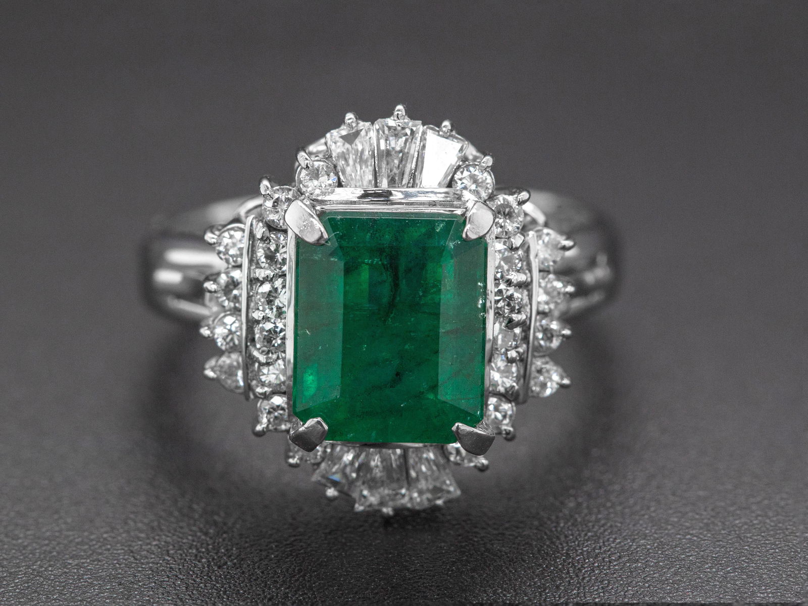 3.16tcw - Emerald & Diamonds - Platinum Ring