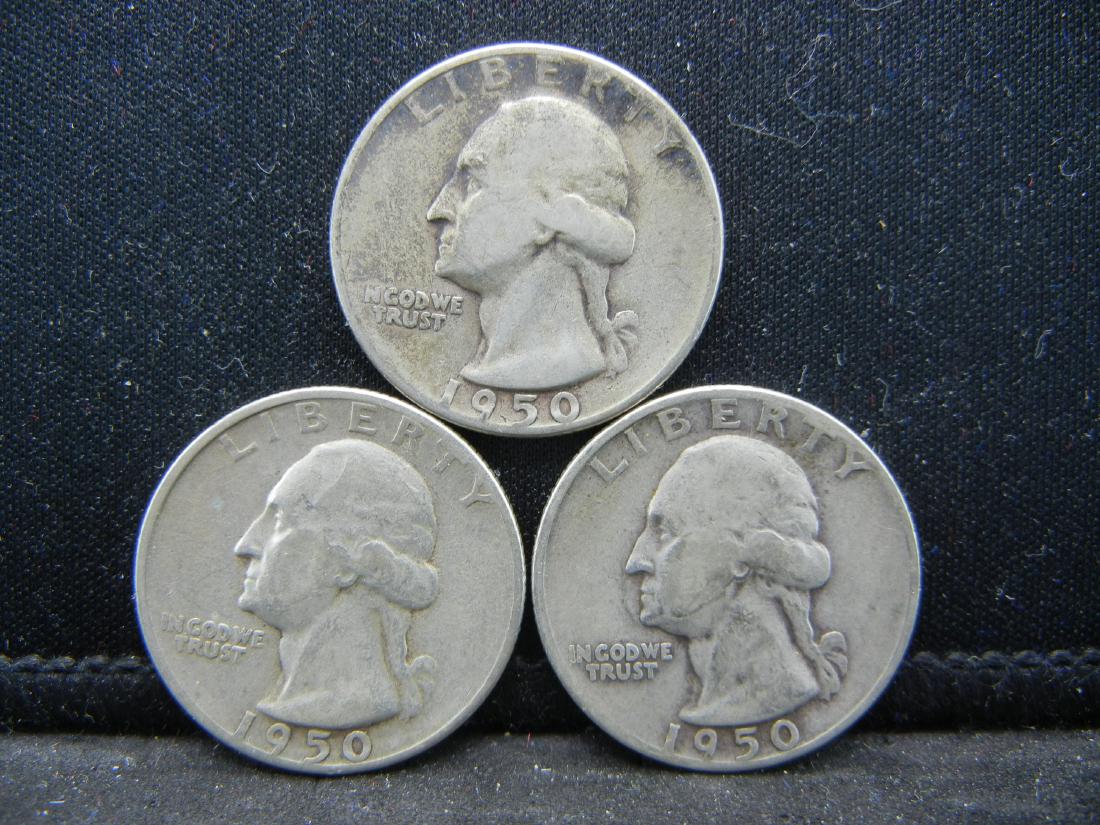 (3)1950-S Washington Silver Quarters. 90%