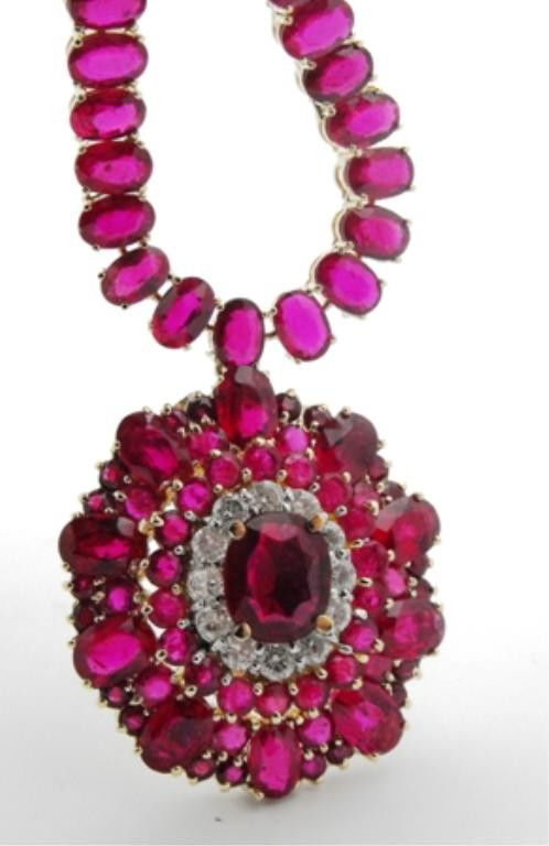 14k Gold 27.74ct Ruby 3.21ct Diamond Necklace