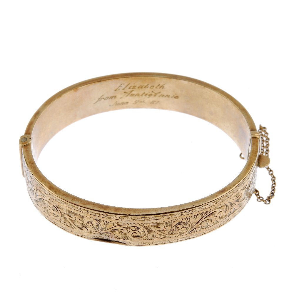 (32654) A mid-20th century 9ct gold hinged bangle.
