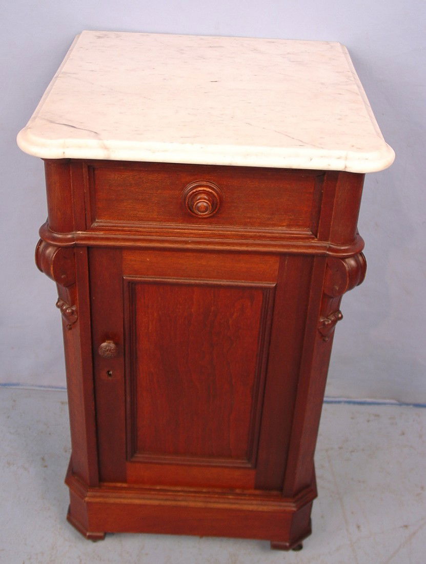 327: Walnut Victorian one half Commode with white marbl