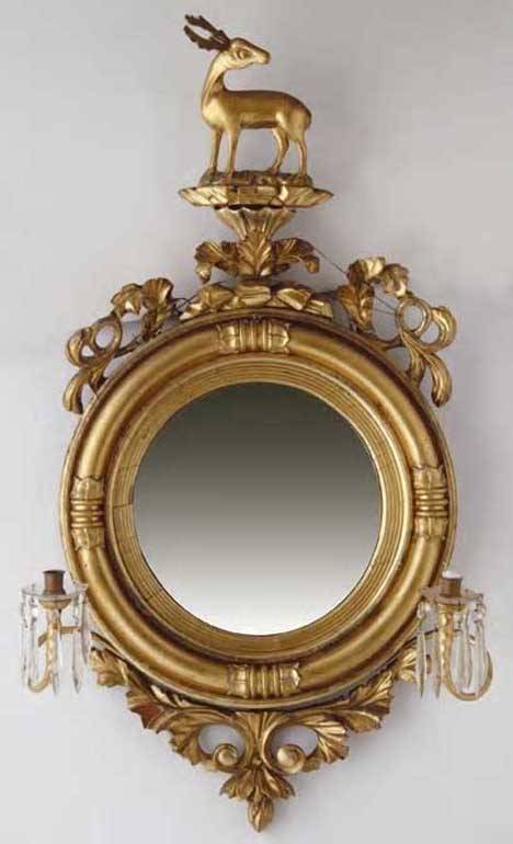 331: A CLASSICAL CARVED GILTWOOD GIRANDOLE MIRROR Ameri