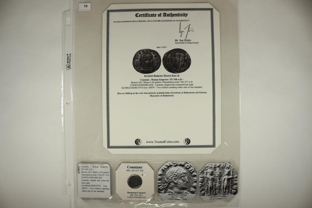 337-350 A.D. CONSTANS ANCIENT COIN (FINE)