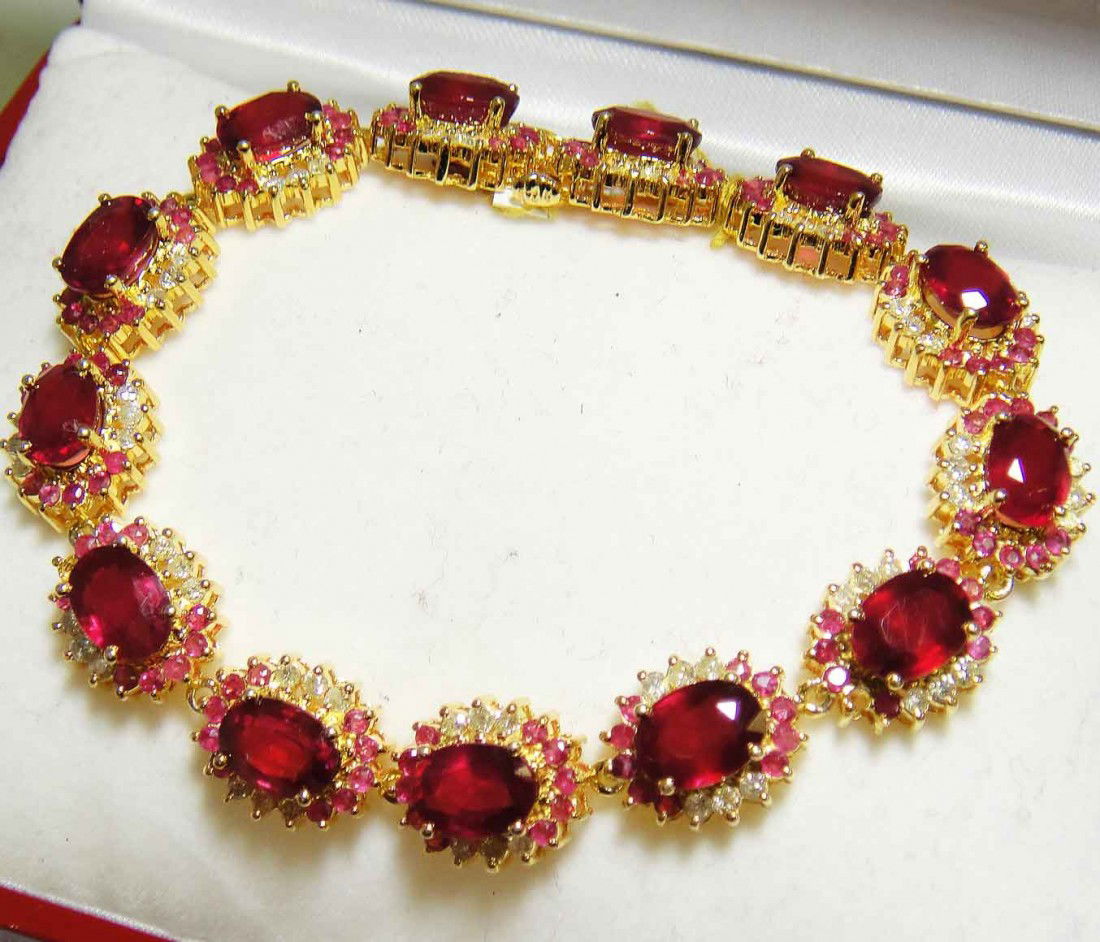 14K Gold 26.21ct Ruby 1.27ct Diamond Bracelet