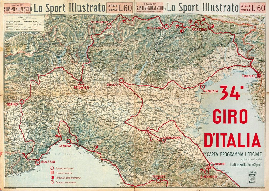 34° Giro d'Italia. Carta. La Gazzetta dello Sport. Cycling route map 1951Chairish Auctions4.5(10.4k)$340