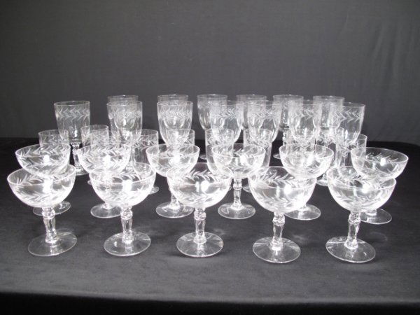 34 PCS ETCHED CRYSTAL STEMWARE