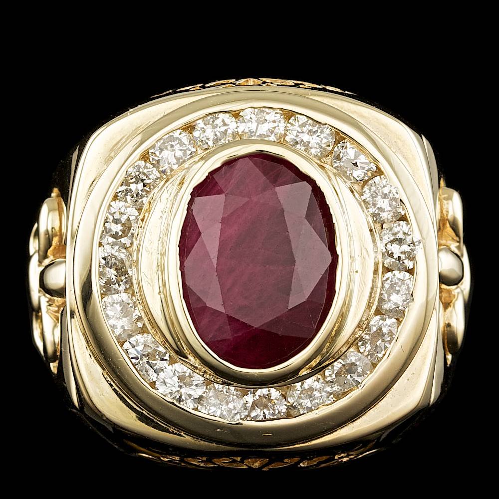 14k Gold 3.00ct Ruby 0.50ct Diamond Mens Ring