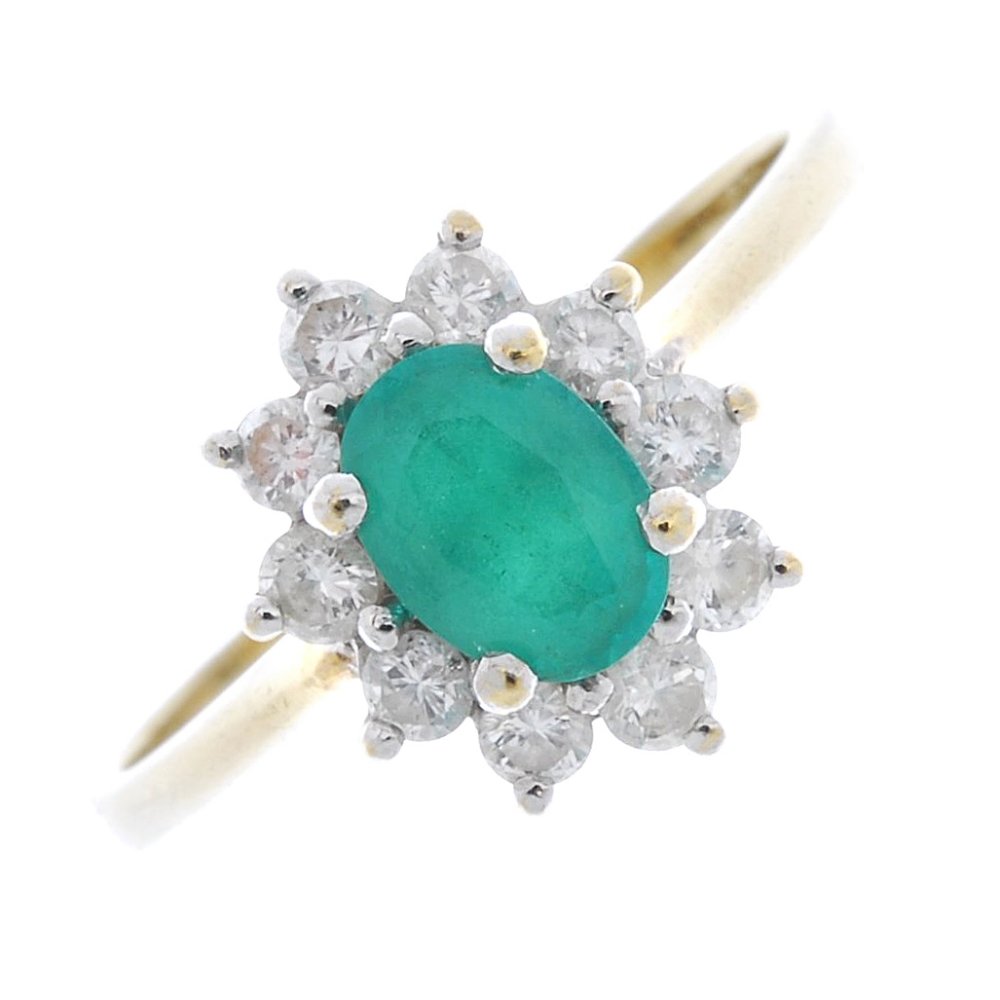 (3495-6-A) An emerald and diamond cluster ring.
