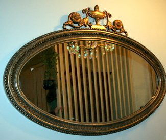 35) OVAL COMPOSITION WALL MIRROR CRESTED BY URN &
