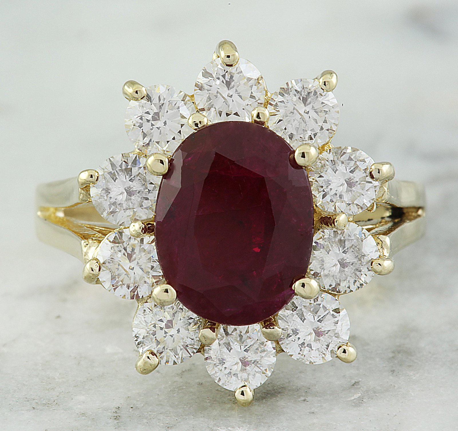 14K Yellow Gold 2.69ct Ruby and 2.08ct Diamond Ring