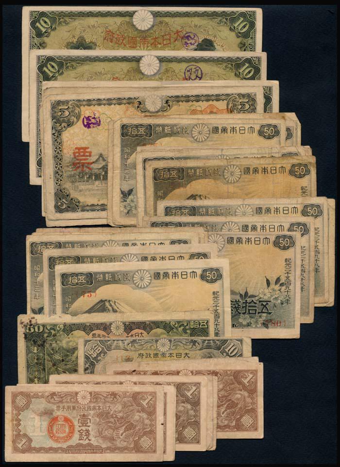 WORLD WAR II JAPANESE INVASION MONEY COLLECTION6 days Left1945 Japan Bank of Japan Note 100 Yen Emergency Issue Control 92Mar 29, 20261935 Japanese 25 Yen 3.5% Government Bond with Coupons No. 070451Mar 29, 20261945 Japan Bank of Japan Note 10 Yen National Diet Building Serial 1183212Mar 29, 2026Japan 1945 10 Yen Phoenix and Parliament Banknote P-85 Serial 140923Apr 26, 20261945 Japan 10 Sen Banknote Serial 16313 Wartime Emergency IssueMar 29, 20261944 Japan 100 Yen Prince Shotoku & Byodo-in Temple (SCWPM Pick 95)Apr 26, 2026Japan 1945 10 Yen Phoenix and Parliament Banknote P-85 Serial 1126112Mar 29, 2026Japan ND 1946 Bank of Japan 10 Yen P86 Serial 17913Mar 29, 2026Japan 1946 Bank of Japan 10 Yen Note, National Diet BuildingMar 29, 2026Japan 5 Yen Military Currency WWII, Showa Era, 1930s–40sMar 29, 2026Japan 10 Sen Banknote Taisho Era 1917 Chrysanthemum CrestApr 26, 2026Japan 1946 10 Yen National Diet Building Issue, Pick 87Mar 29, 2026Japan Occupation 10 Yen Pick 53 No Serial Wartime IssueMar 29, 2026Japan 5 Yen Banknote (Series 1944) Serial 11726 Wartime IssueApr 26, 2026Japan 1943 Bank of Japan 10 Yen Note National Diet Building Pick 53A Serial 1192922Apr 26, 2026