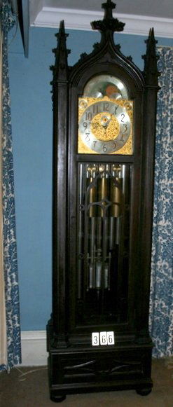 366) E. 20TH C. GOTHIC-STYLE TALL CASE W/CHIMES,