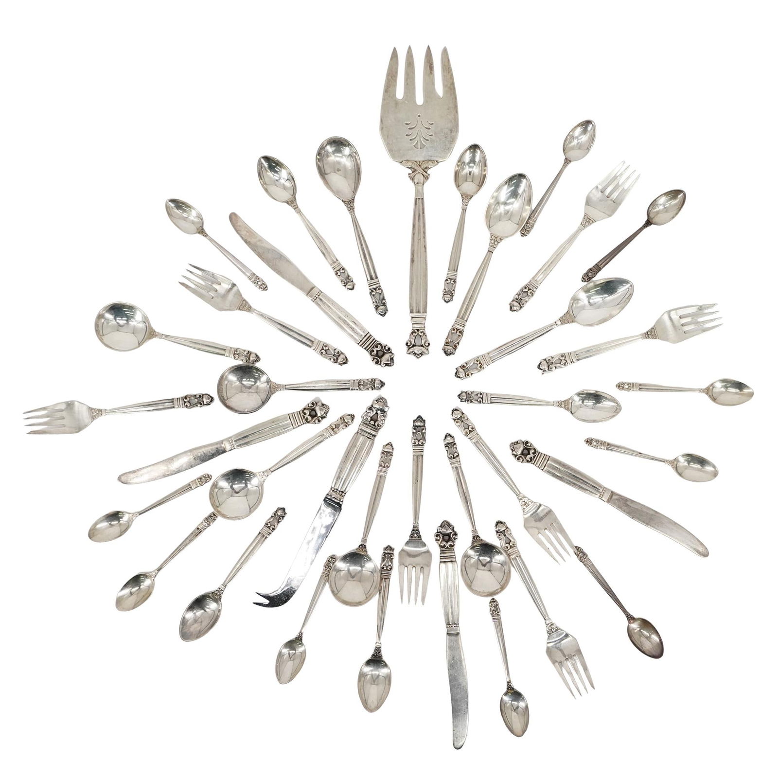 (37 pc) Georg Jensen "Acorn" Sterling Silver Flatware