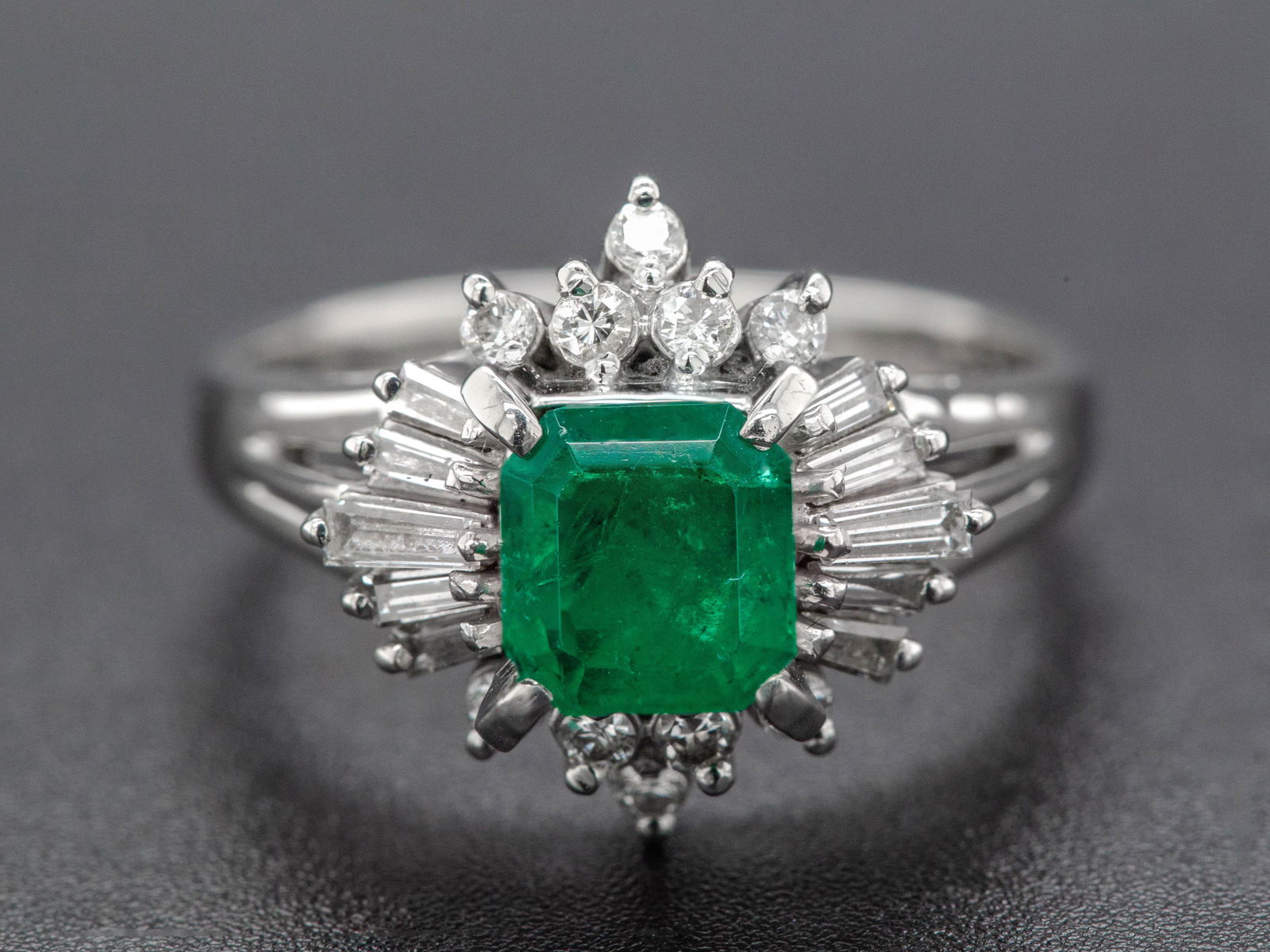 14k White Gold 2.50ct Emerald 1.20ct Diamond Ring