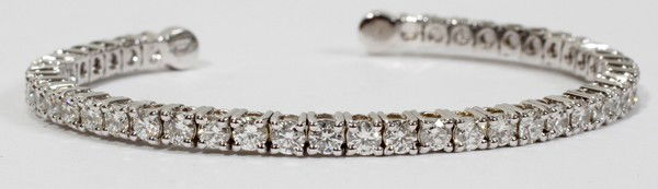 SoldFlexible Diamond Bangle BraceletDiamond Bracelet. Set in luxurious 18 karat yellow gold, this bracelet is a real eye-catcher. It features approximately 1.25 carats of round, brilliant-cut, E-F color, VS clarity diamondsSee Sold Price