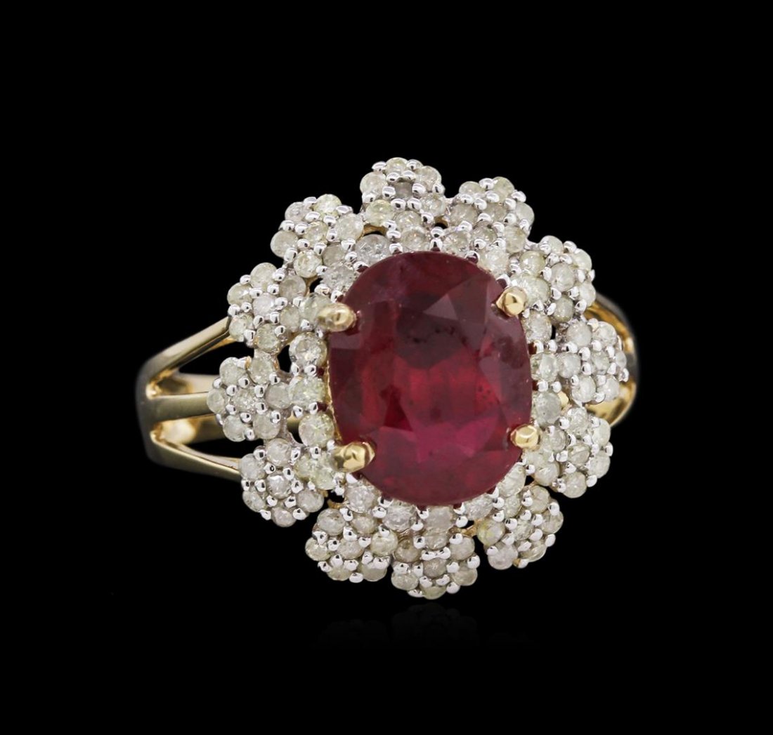 3.75ct Ruby and Diamond Ring - 14KT Yellow Gold