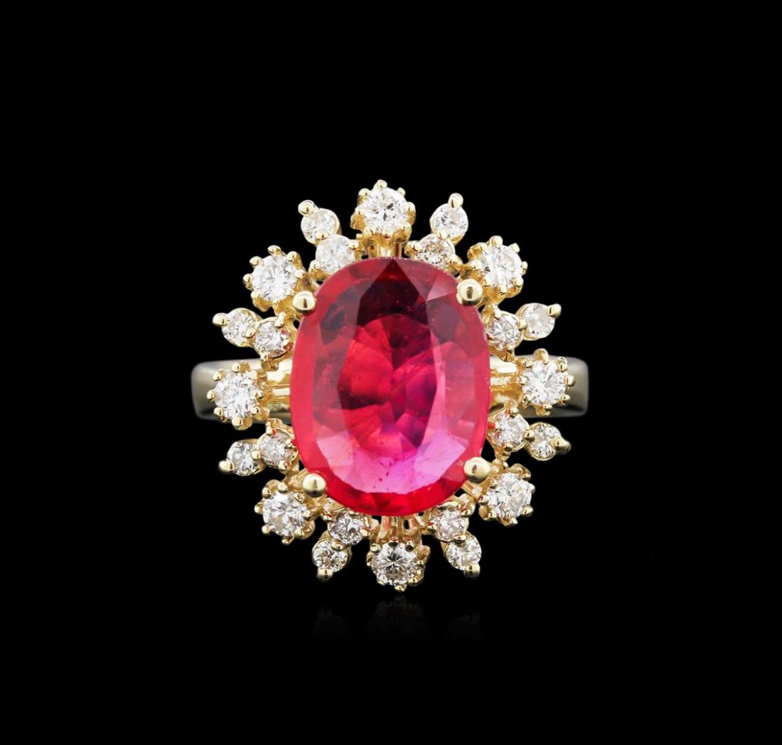 3.82ct Ruby and Diamond Ring - 14KT Yellow Gold
