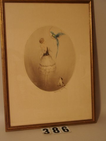 386) LOUIS ICART COLOURED ETCHING, "PERROQUETS",