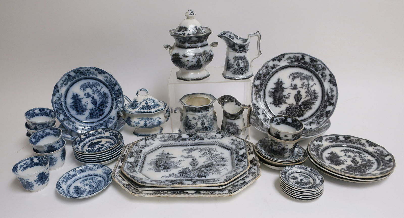 39-Pc. Jeddo Pattern Transferware, 19th C., Adams