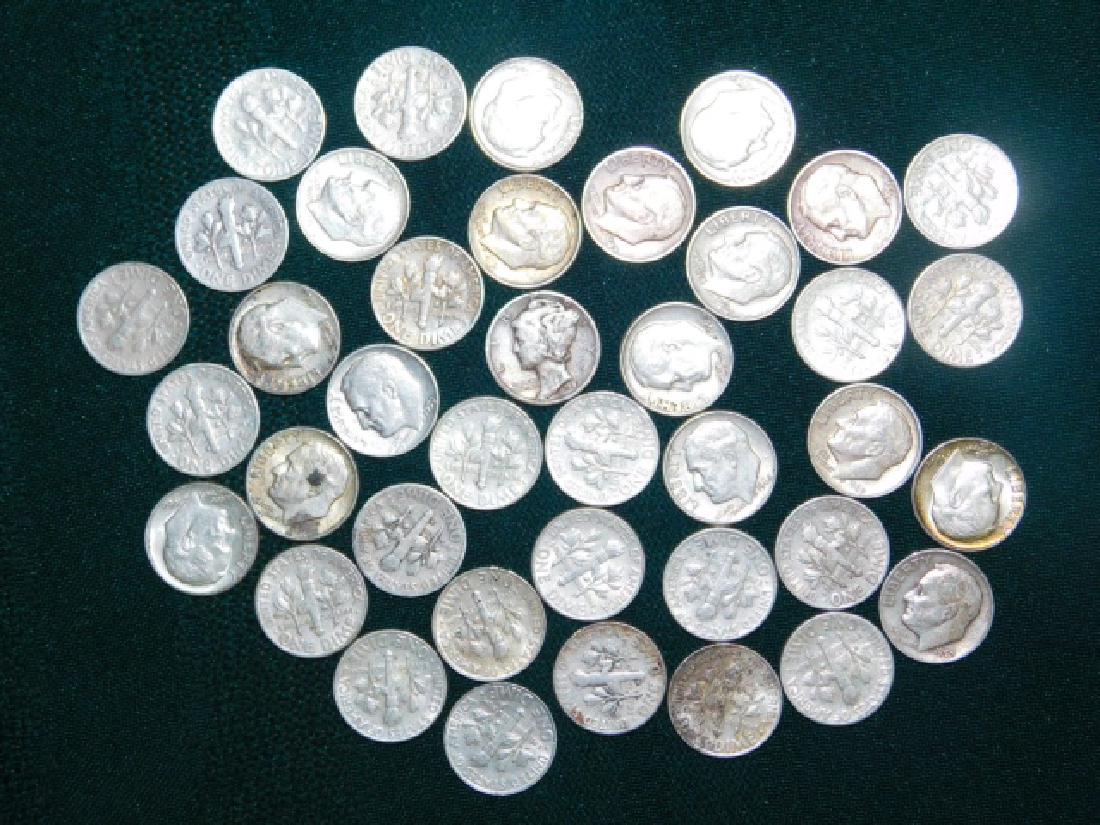 39 ROOSEVELT DIMES PLUS 1 MERCURY DIME