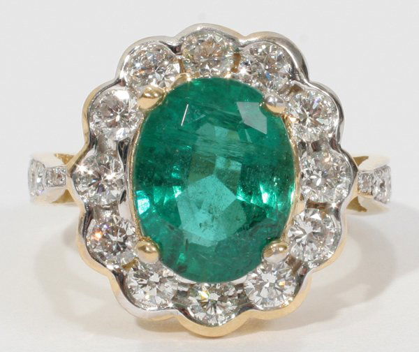 18k Gold 1.75ct Emerald 1.50ct Diamond Ring