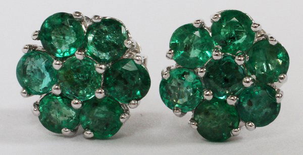 3CT EMERALD CLUSTER EARRINGS PAIR