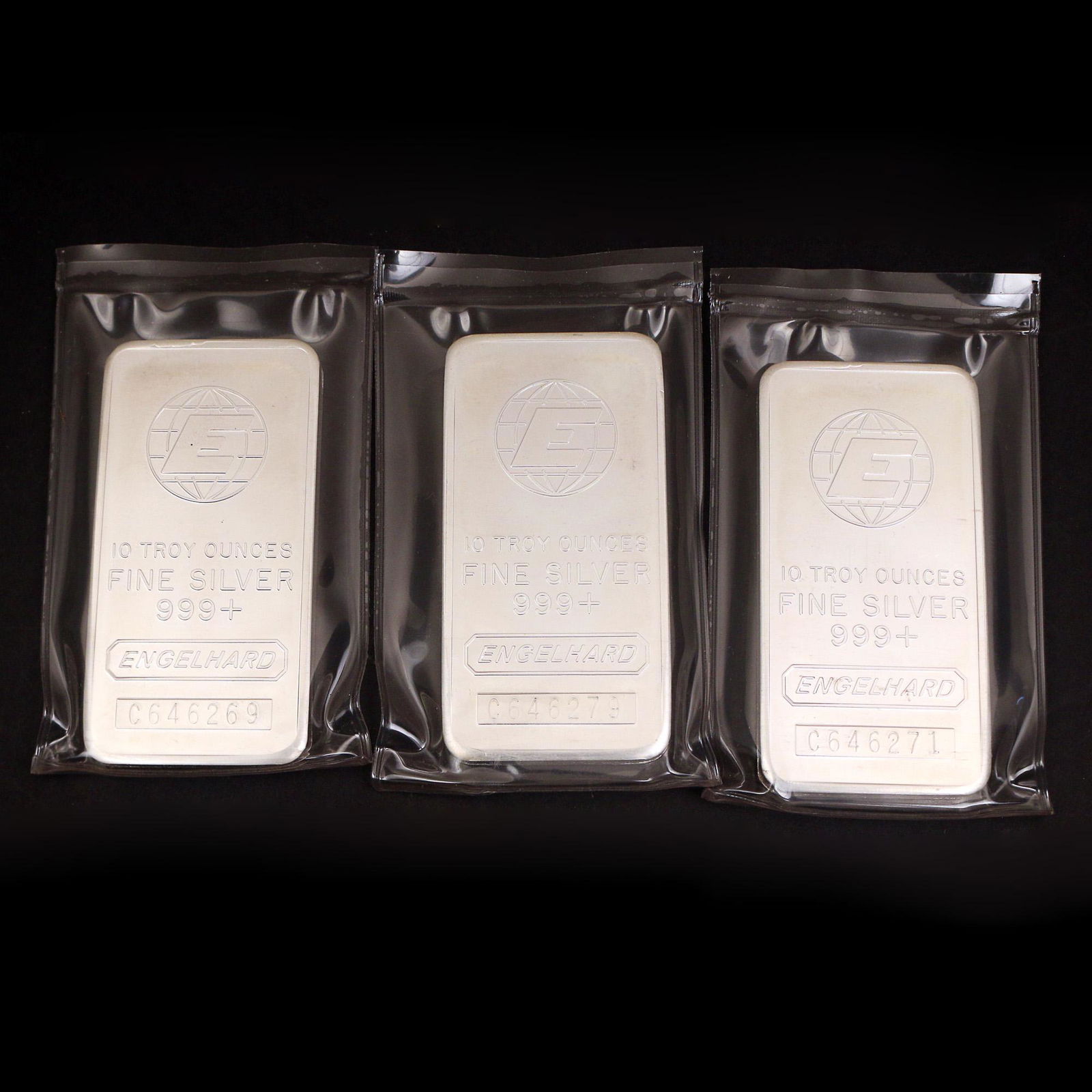 (3pc) 10 TROY OZ. SILVER BARS, ENGELHARD