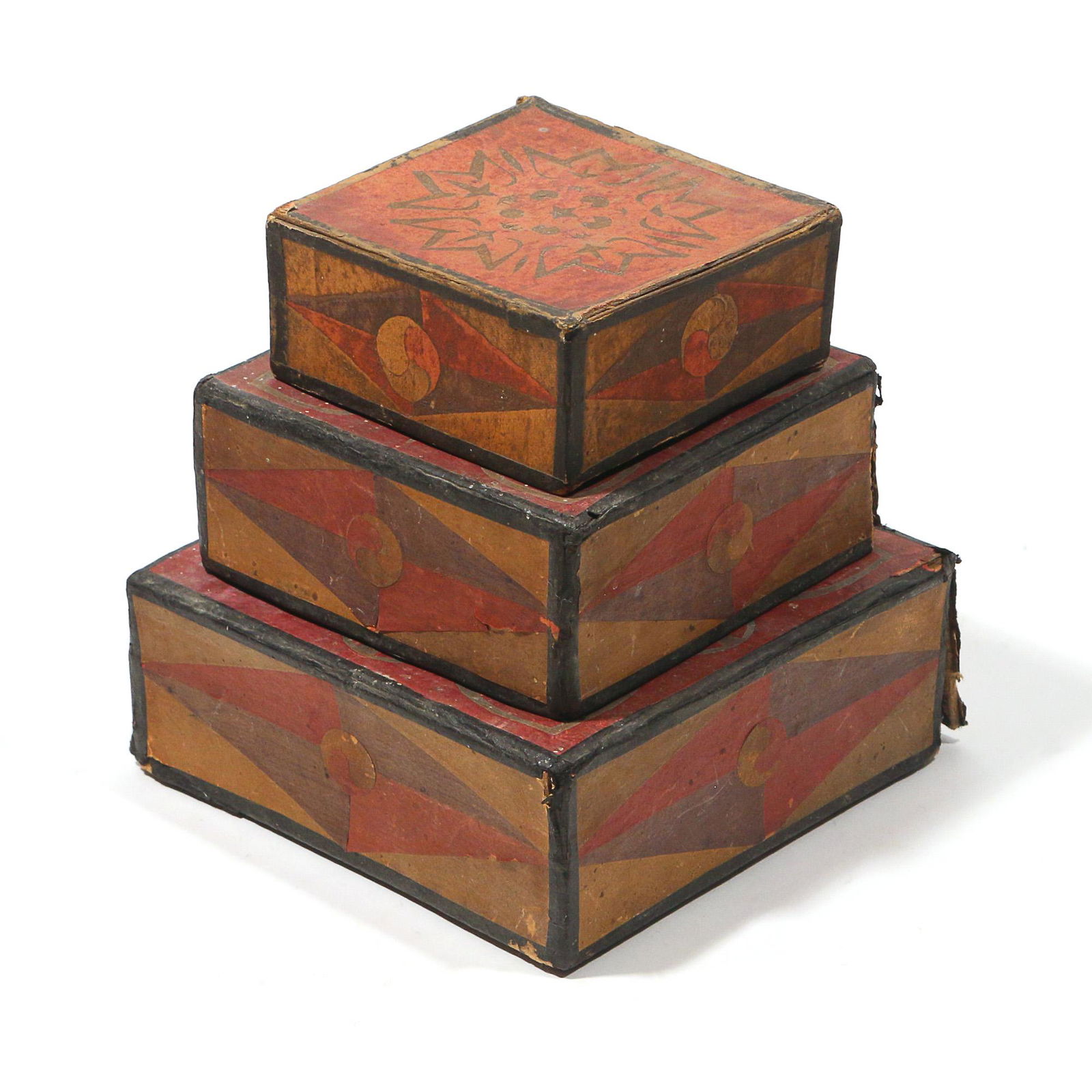 (3pc) AMERICAN FOLK ART PAPER BOXES