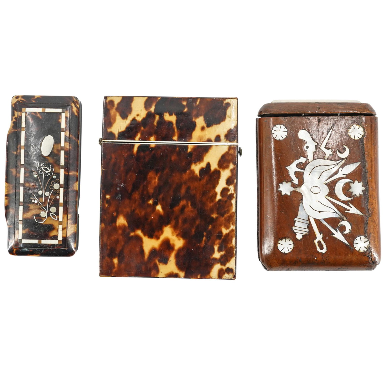 (3Pc) Antique Calling Card Cases and Snuff Box