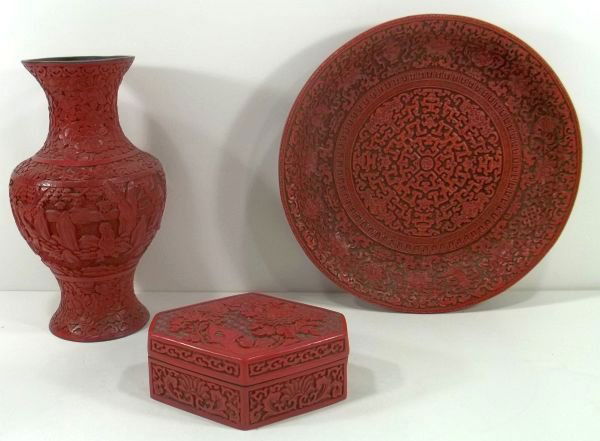 3pc. Chinese Cinnabar Lot