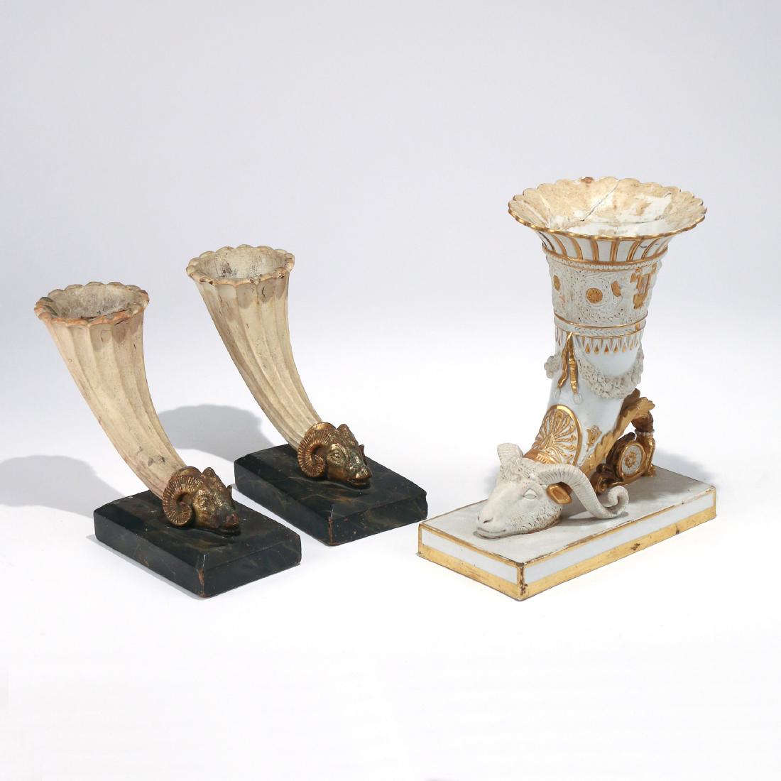 Paris Porcelain Cornucopia Vases, Pair