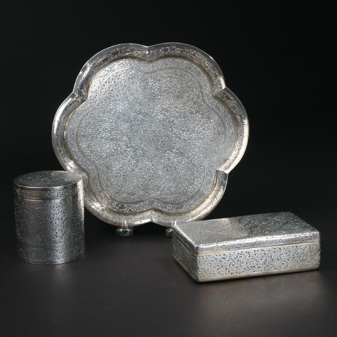 Silver Plate Lidded Boxes Plateau Tray and Brass Stamp Box (5)Premier Auction Galleries4.4(366)$10(1 bid)7 days Left