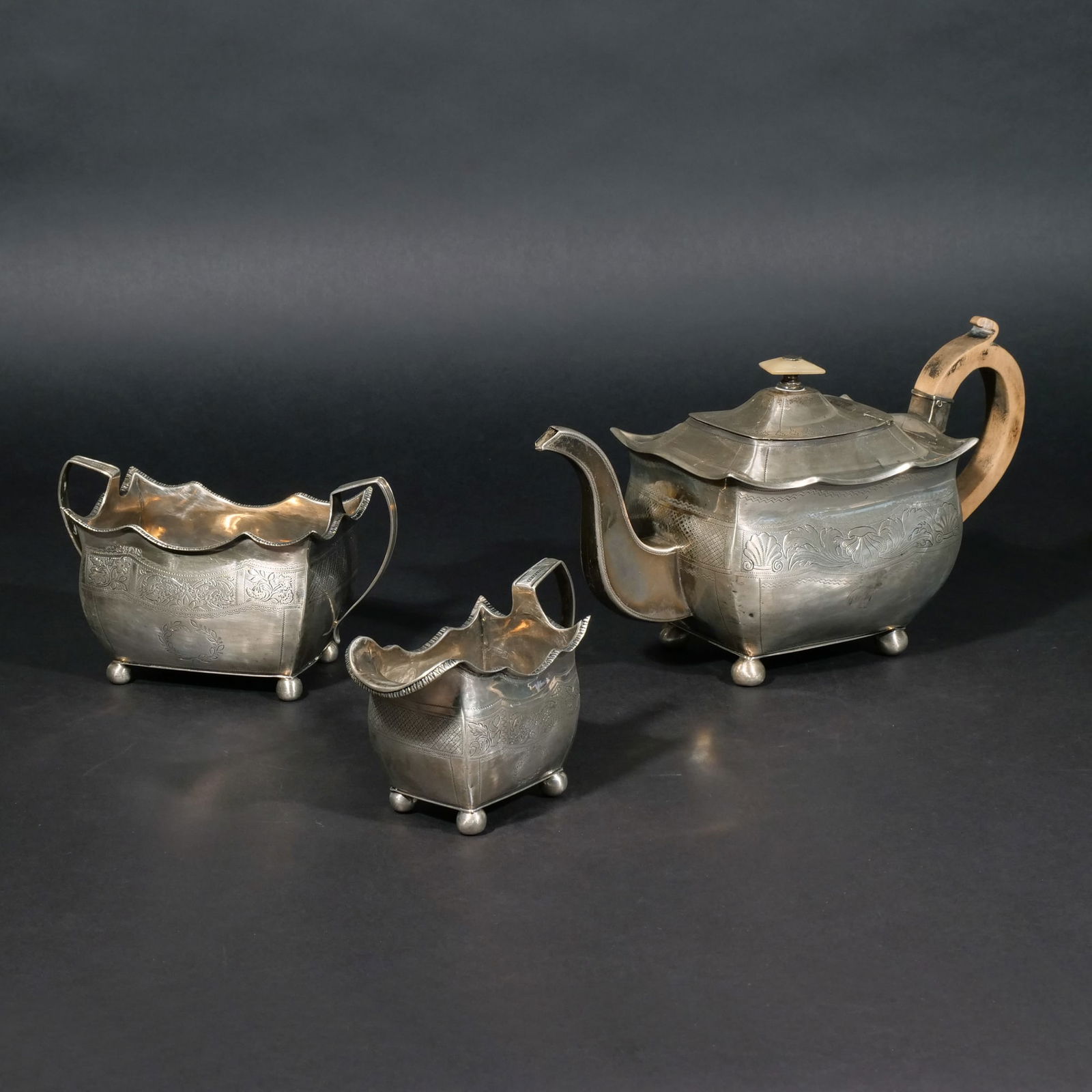 (3pc) JOHN KEENE IRISH SILVER REGENCY TEA SERVICE