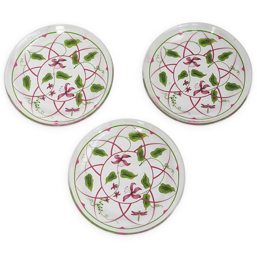 (3Pc) Lynn Chase Painted Glass Plate Set