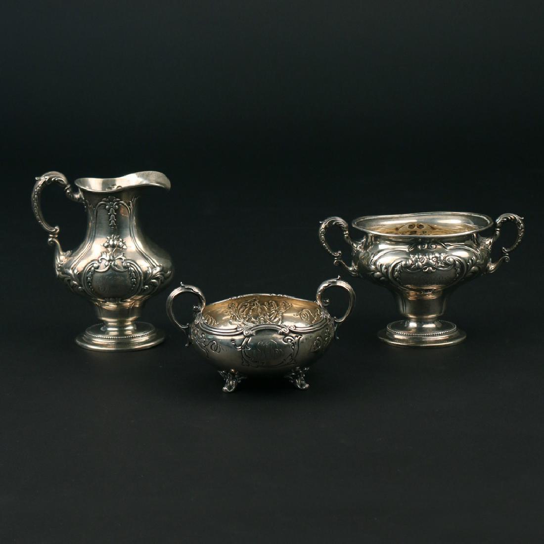 Sterling Silver Kiddush Cup & Sugar Shaker 3pc LOT13 hrs LeftLot of 2 Wallace Sterling Silver Items & AnotherFeb 18, 2026Set 3 Federal Pewter Creamer, Sgr Bwl & TeapotFeb 18, 2026(3) AMERICAN GORHAM STERLING SILVER COFFEE POT, SUGAR & CREAMERFeb 22, 2026Vintage WM A Rogers Silverplated Tea Pot & CreamerFeb 25, 2026Vintage Silver Plate Reed And Barton Creamer Sugar Bowl Footed BowlFeb 19, 2026Vintage Crescent Silverplated Creamer And Sugar BowlFeb 25, 2026Towle Old Colonial Sterling Silver Tea Set 3pc Coffee Sugar Creamer3 days LeftReed and Barton Louis XV Sterling Silver Coffee Set 3pc AntiqueFeb 18, 2026THREE ASSORTED ENGLISH SILVER ITEMS Creamer, H: 5 5/8 in. Weighable silver, 6.2 troy oz.1 day Left(4) STERLING SILVER WEIGHTED BASE CREAMERS,SUGARSFeb 22, 2026Sterling Silver Tea Set2 days LeftGorham Sterling Silver Tea Service1 day LeftStunning 4PC English Sterling Silver Salt Holders Set 1800-1900Mar 03, 2026(5) Pc. Sterling Silver Tea Set4 days Left(4) STERLING SILVER WEIGHTED BASE CREAMERS,SUGARSFeb 22, 2026