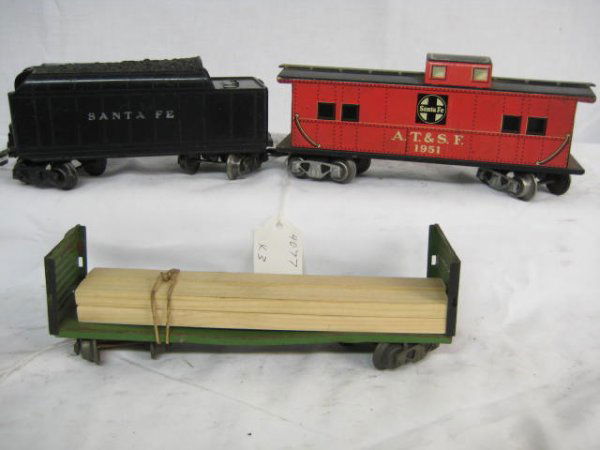 Marx post war. Lot of six 3/16 scale freight cars and one tender including 951 NYC tender, 20102 NYCMarx post war. Lot of six 3/16 scale freight cars and one tender including 951 NYC tender, 20102 NYC caboose, 347000 ERR gondola, 44572 CNO a high sided gondola ,174580 NYC box car, 254000 B&O gondola