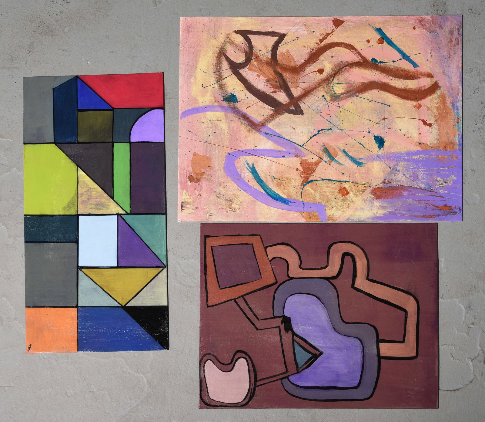 3pcs Assorted Acrylic Abstract Paintings