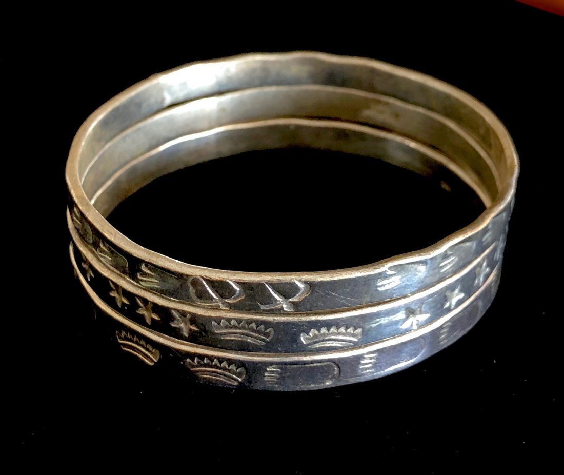 Lancelot Bangle Bracelet in 24k Gold and Sterling Silver by Gurhan 19mm Wide5 days LeftNative American Sterling Silver Whirling Log Overlay Cuff BraceletApr 25, 2026Lot of Three Sterling Mexican Bangle BraceletsApr 16, 2026Ingot Silver, Repousse And Stamped Bracelet4 days LeftNavajo Dine & Mexican Silver Cuff Bangles, 3May 21, 2026Helen Harrison Vintage Navajo Stamp Work Cuff BraceletApr 19, 2026Handmade Vintage Sterling Silver Open Cuff Bangle Bracelet 6.75in5 days LeftNavajo Sterling Silver Open Cuff Bangle Bracelet 6.5 Inch4 days LeftTHREE VIKING SILVER BRACELETS7 days LeftVintage Navajo Sterling Silver Stamp Work & Brass Twist Wire Cuff BraceletApr 19, 2026FOUR STERLING SILVER BANGLE BRACELETS Approx. 58.5 total dwt.Apr 14, 2026INDIAN RAJASTHAN SILVER HINGED BANGLEApr 24, 2026Womens Vintage Estate Sterling Silver Bangle BraceletApr 16, 2026Wilbur Tracy Navajo Dine Sterling Silver BangleMay 07, 2026Navajo Stamp Work Half Round Cuff BraceletApr 19, 2026John Hardy Kawung Cuff Bangle in Sterling SilverApr 22, 2026