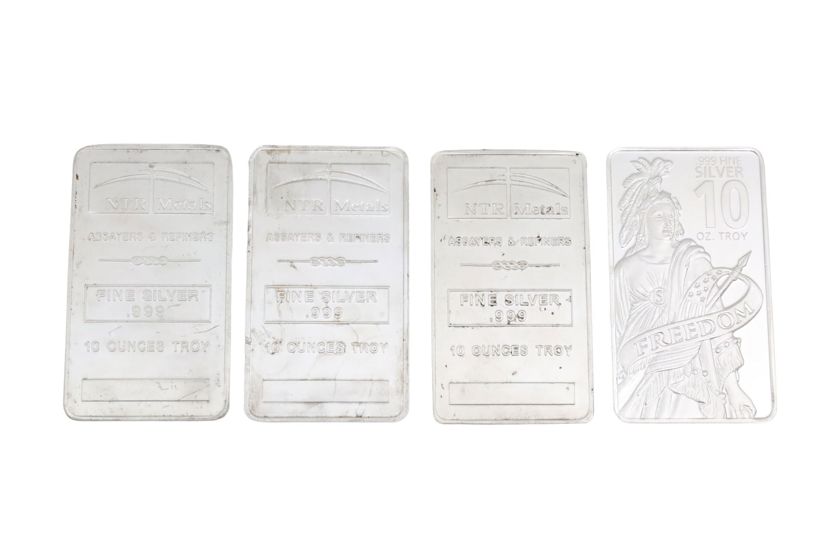 4 - 10 OZ. TROY SILVER BARS; .999 FINE
