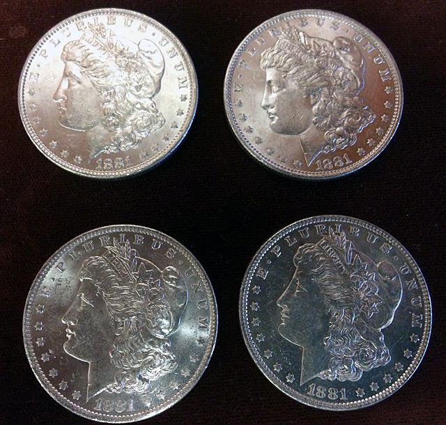 4 1881-O Morgan Silver Dollars, Brilliant Uncirculated