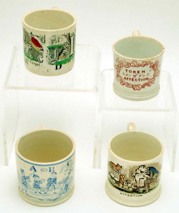 4 19th C Transferware Children's Mugs