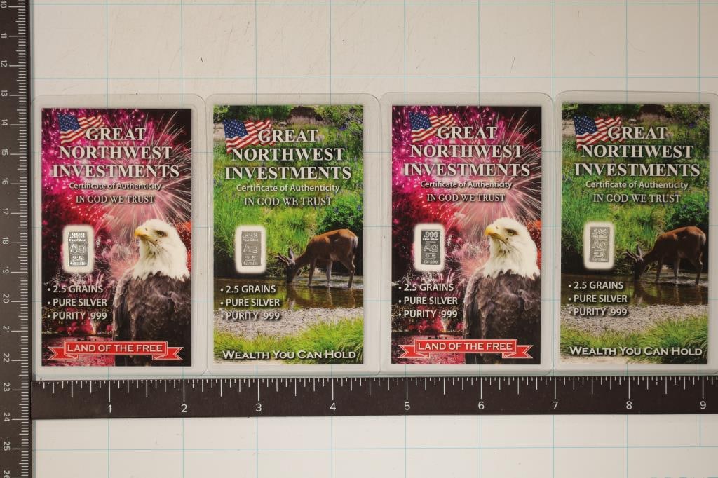4-2.5 GRAIN SILVER BARS IN LAMINATED CARDS: