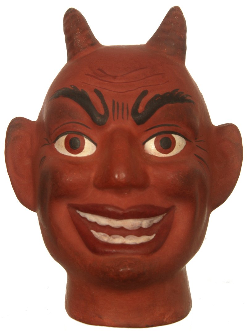 4 3/4" FIGURAL HAPPY FACE DEVIL CANDY CONTAINER