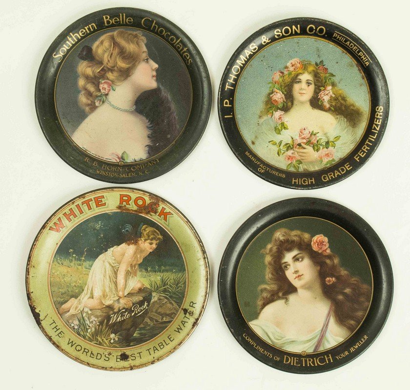 4 Advertising "art Lithography" Tip Trays