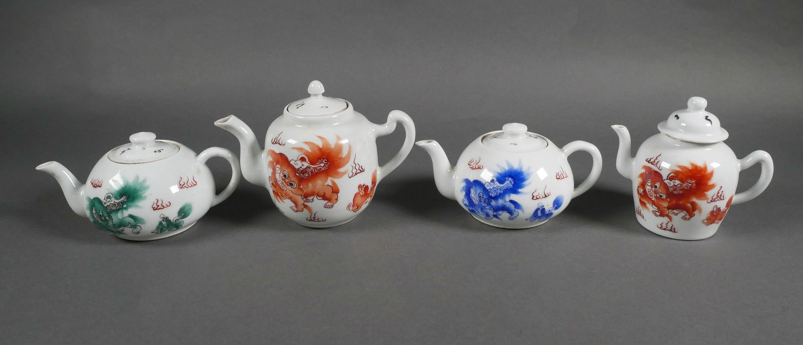 (4) Antique Chinese Dragon (Foo Dog) Teapots
