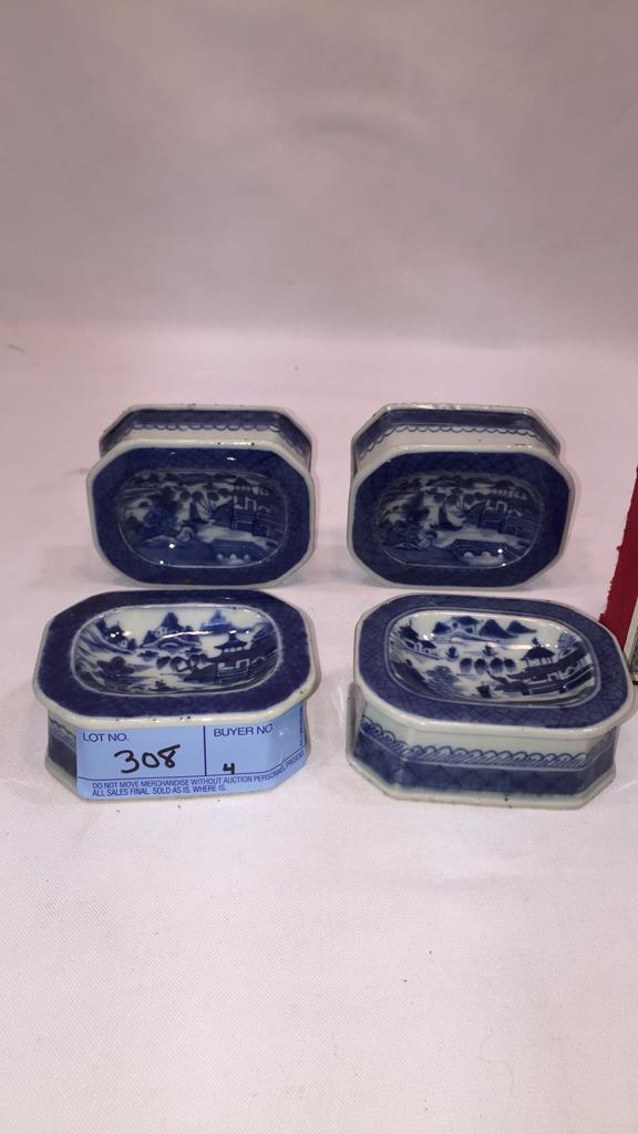 4 ANTIQUE FOOTED CANTON SALTS ~ 3 7/8"