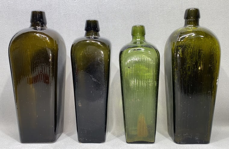 4 Antique Green Bottles