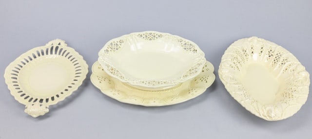 4 Antique Leedsware Creamware Oval Plates